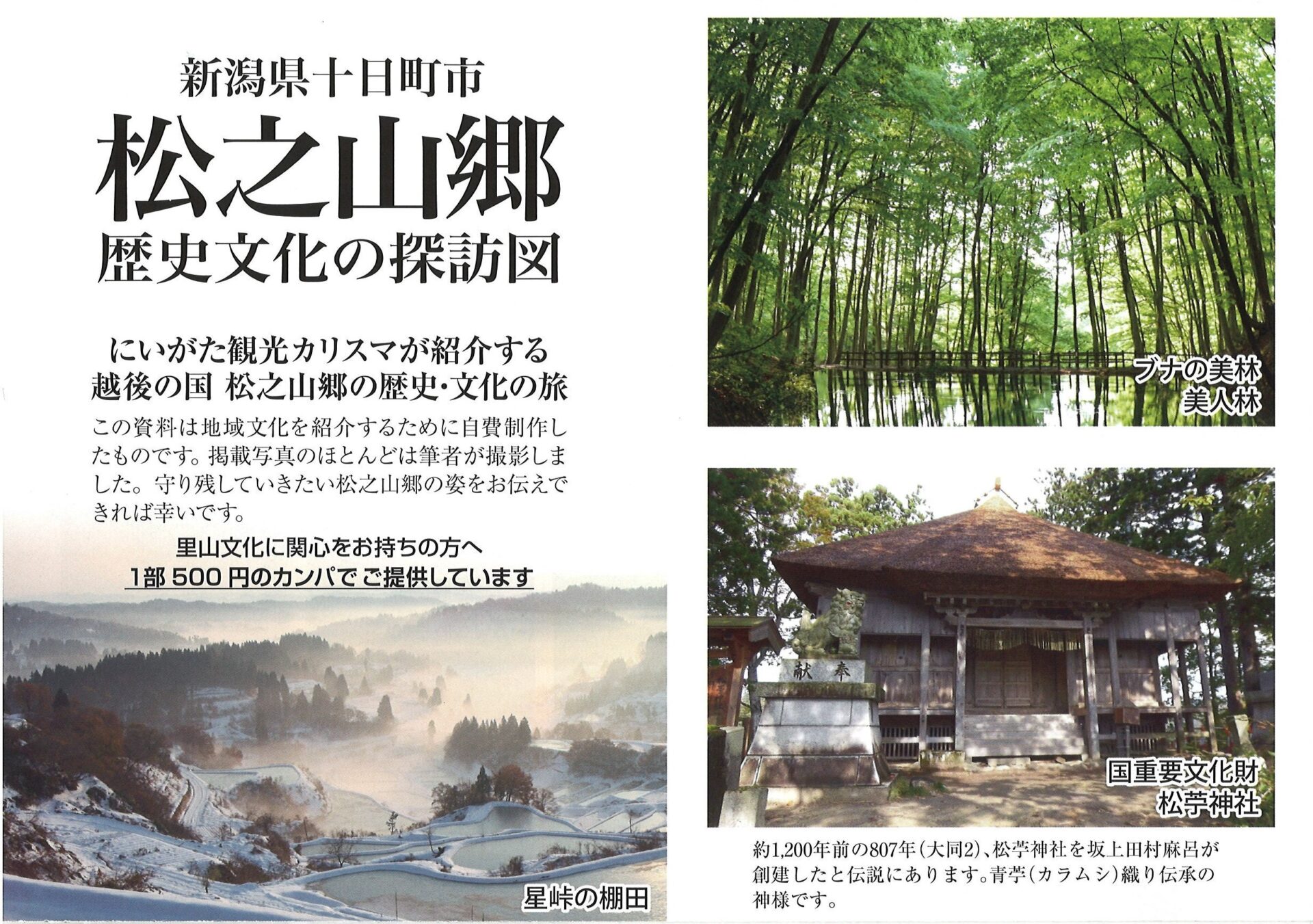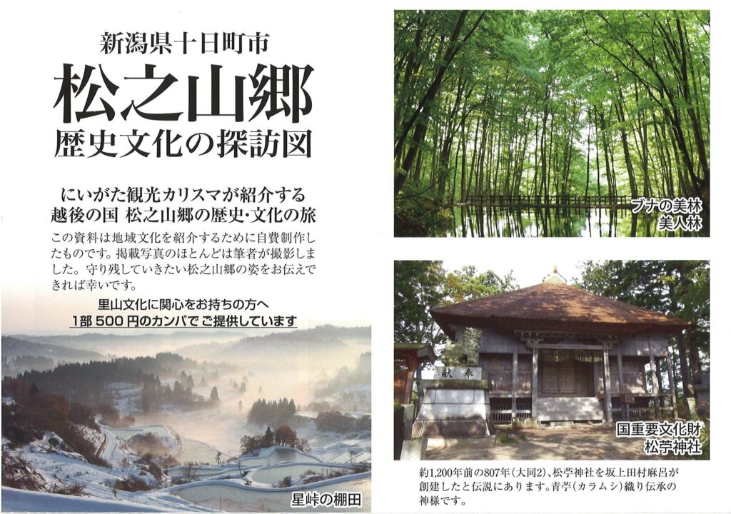 にいがた観光カリスマ村山達三さんが集めた地元の見どころの地図、山菜、雪や集落の情報をまとめた資料が届きました。