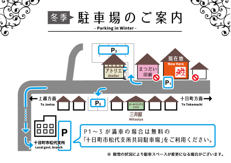 まつだいカールベンクスハウス駐車場【冬】 Parking in Spring