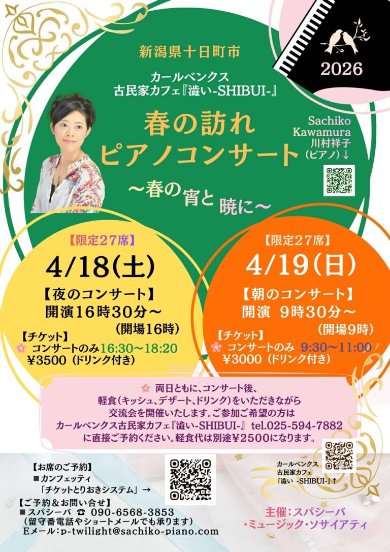 4月6日(日)11:00~カールベンクス古民家カフェ『澁い -SHIBUI-』を会場に「春を呼ぶコン […] -