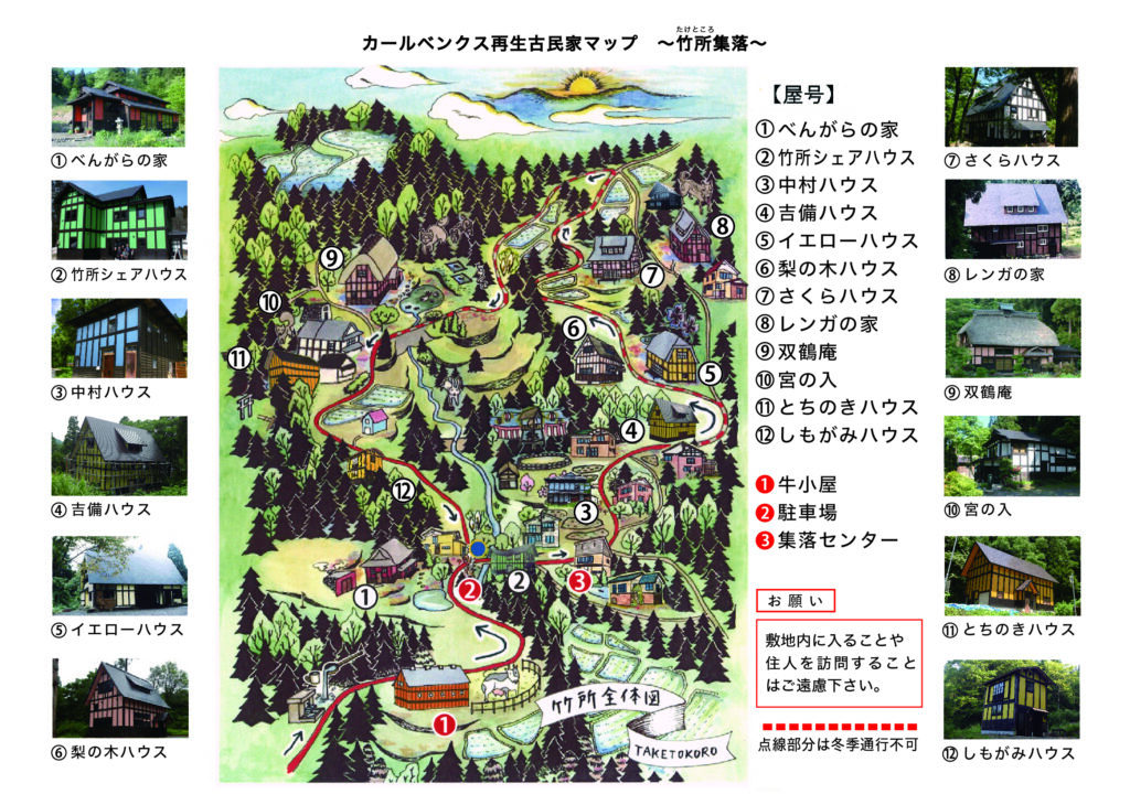 昔は38軒あったという竹所集落は、私が移り住んだ頃には9軒だけになっていました。私はここで9軒の建物を作り、子供連れで移り住む人がいたり、子どもが生まれたりして、かつては平均年齢が70歳くらいだったのが、今は40歳くらい。限界集落に次々と若い人々が移住したことで「奇跡の集落」と呼ばれるまでになりました。